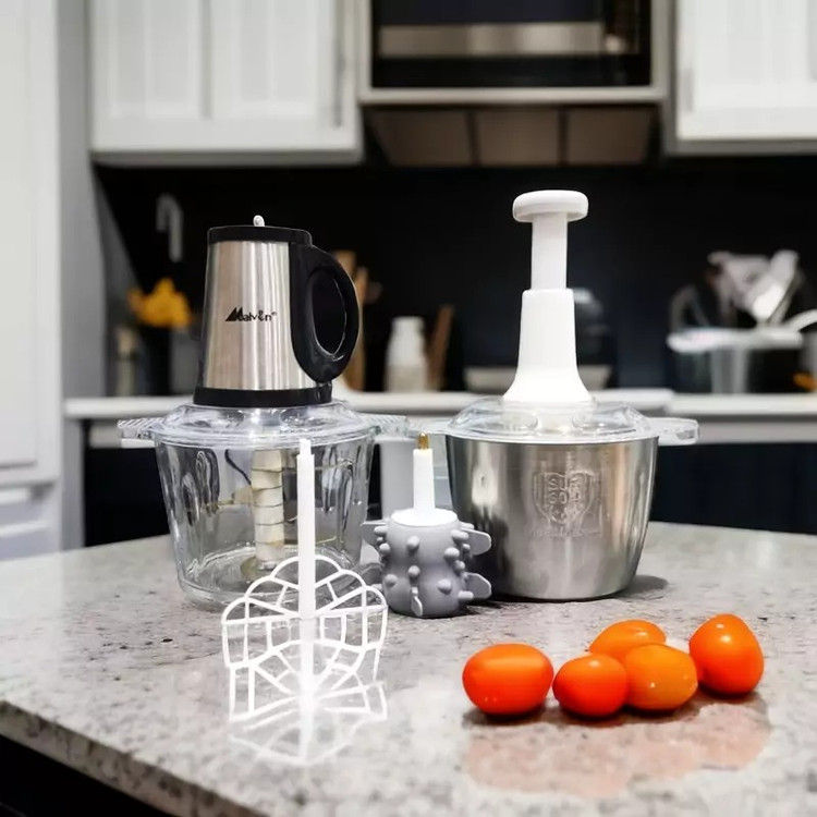 مدرن ترین خردکن با دو عدد شش تیغه تیتانیوم فوق تیز و نشکن ، این خردکن مناسب برای خرد کردن مواد مختلف از قبیل میوهها ، سبزیجات ، گوشت و سایر مواد غذایی میباشد . همچنین ، کاسههای استیل ضد زنگ و پیرکس با ظرفیت 3.5 لیتری این امکان را برای شما فراهم میکنند تا بتوانید مواد غذایی خود را به راحتی خرد کرده و آماده آشپزی کنید .
